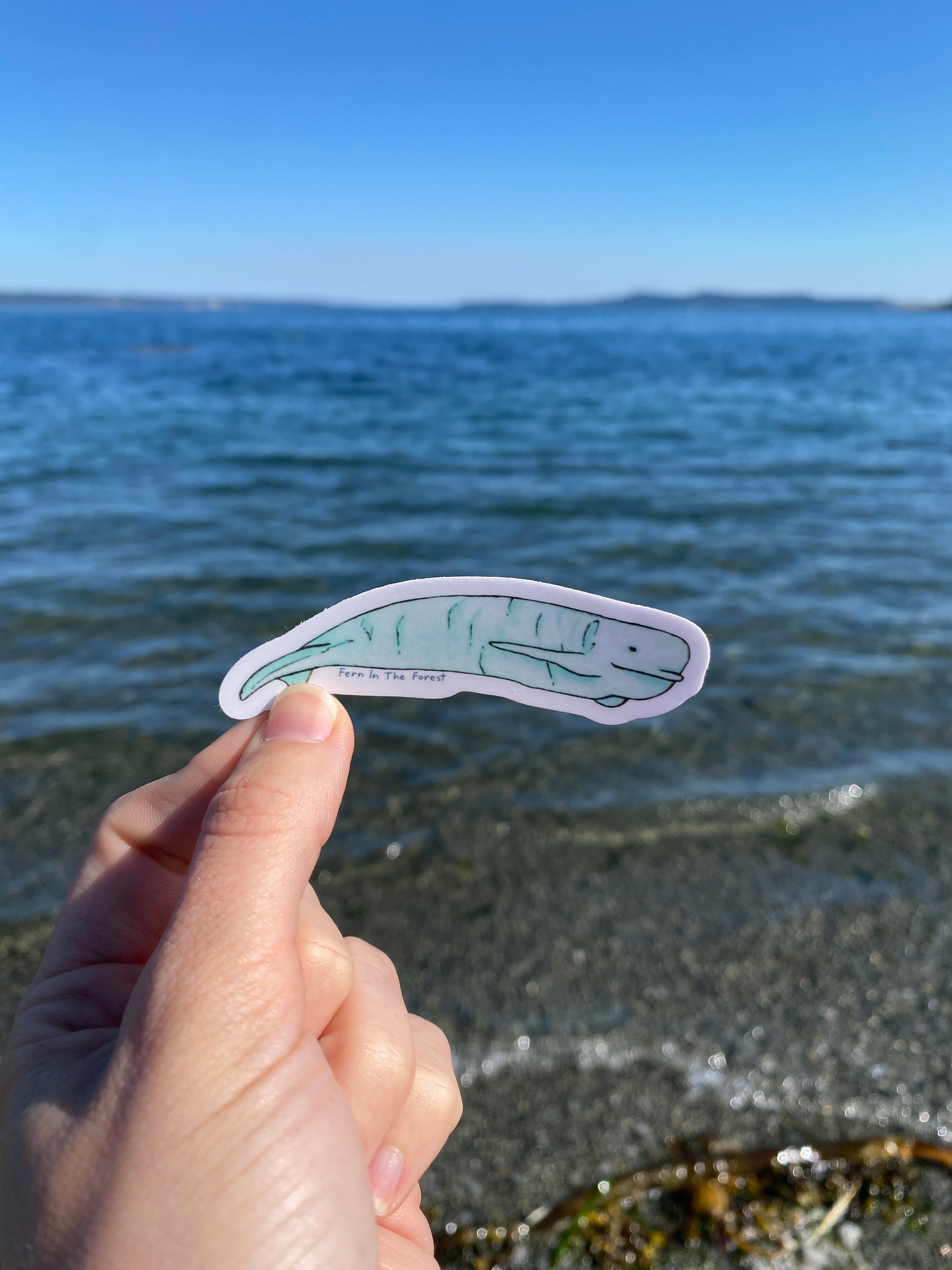 3.25" x 1.1" beluga whale sticker! This sticker is made from my original, watercolor painted, whale design. The sticker is vinyl and water/weather resistant!